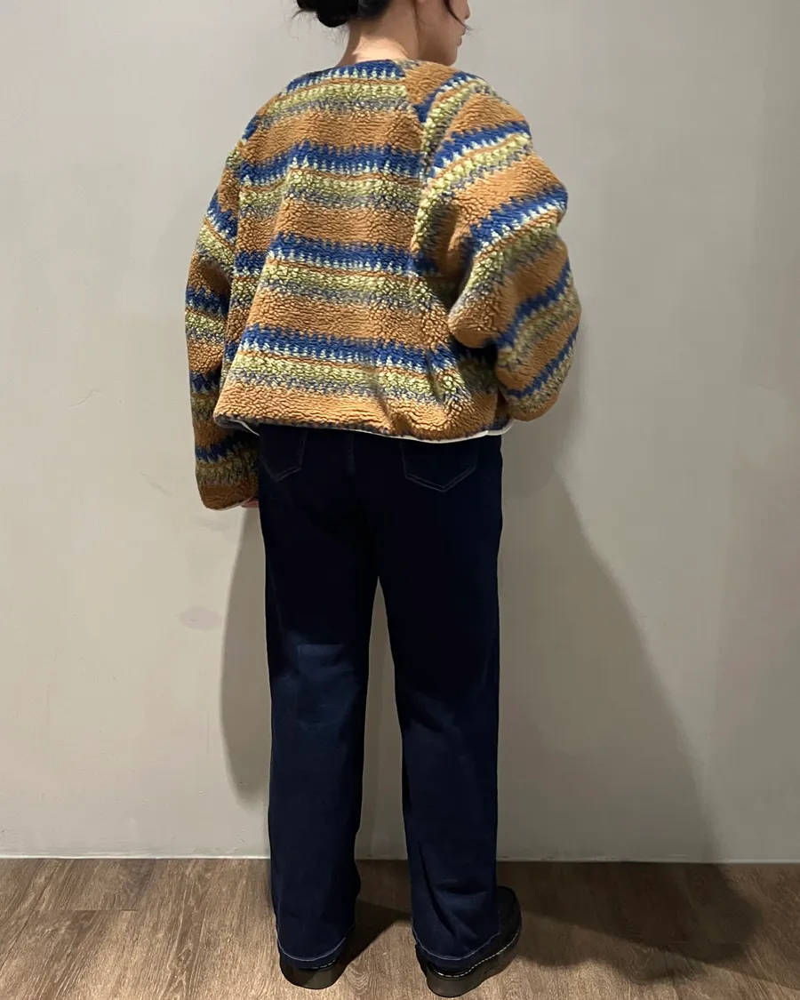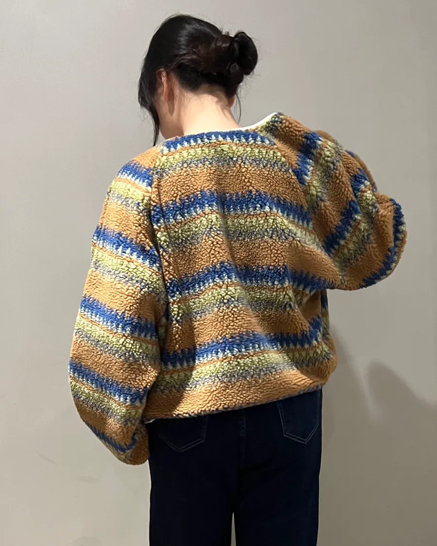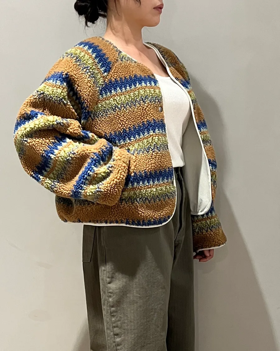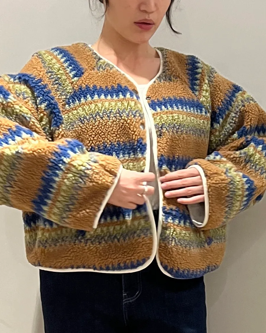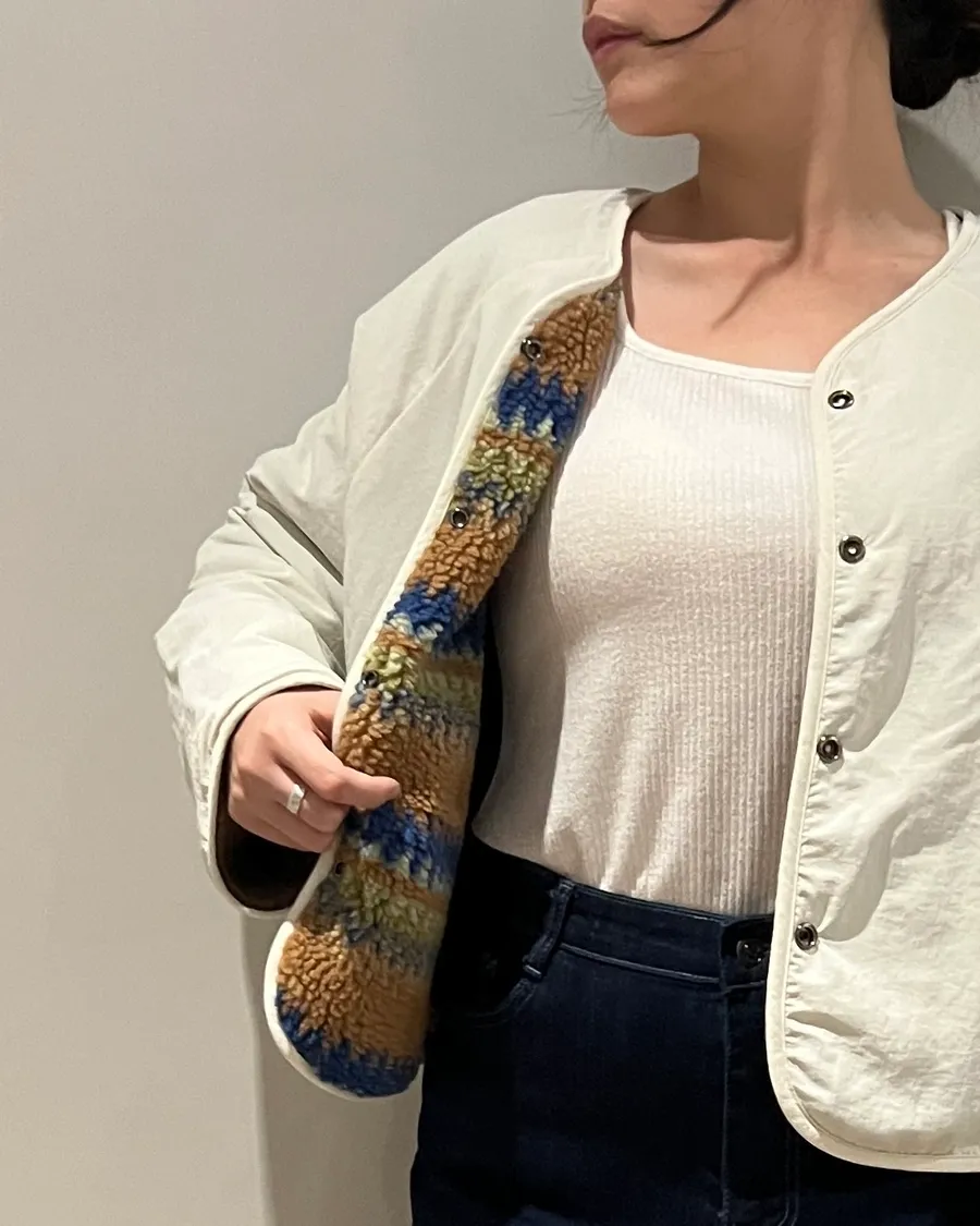 短版設計更顯修長,不過吸引我的還有特殊花樣搭配搖粒絨獨特顆粒感,說是印象派點描畫也不為過,而且隨你心情雙面皆可穿。
