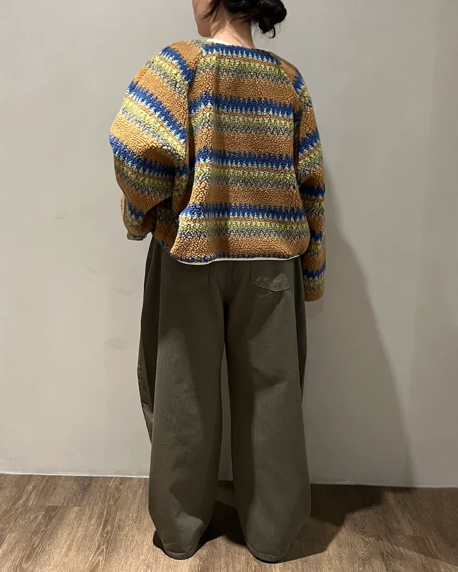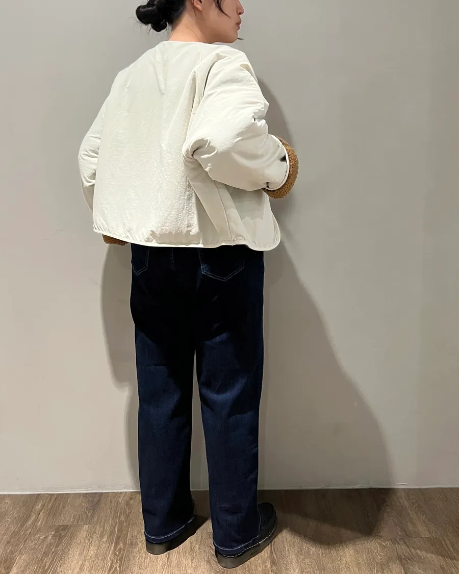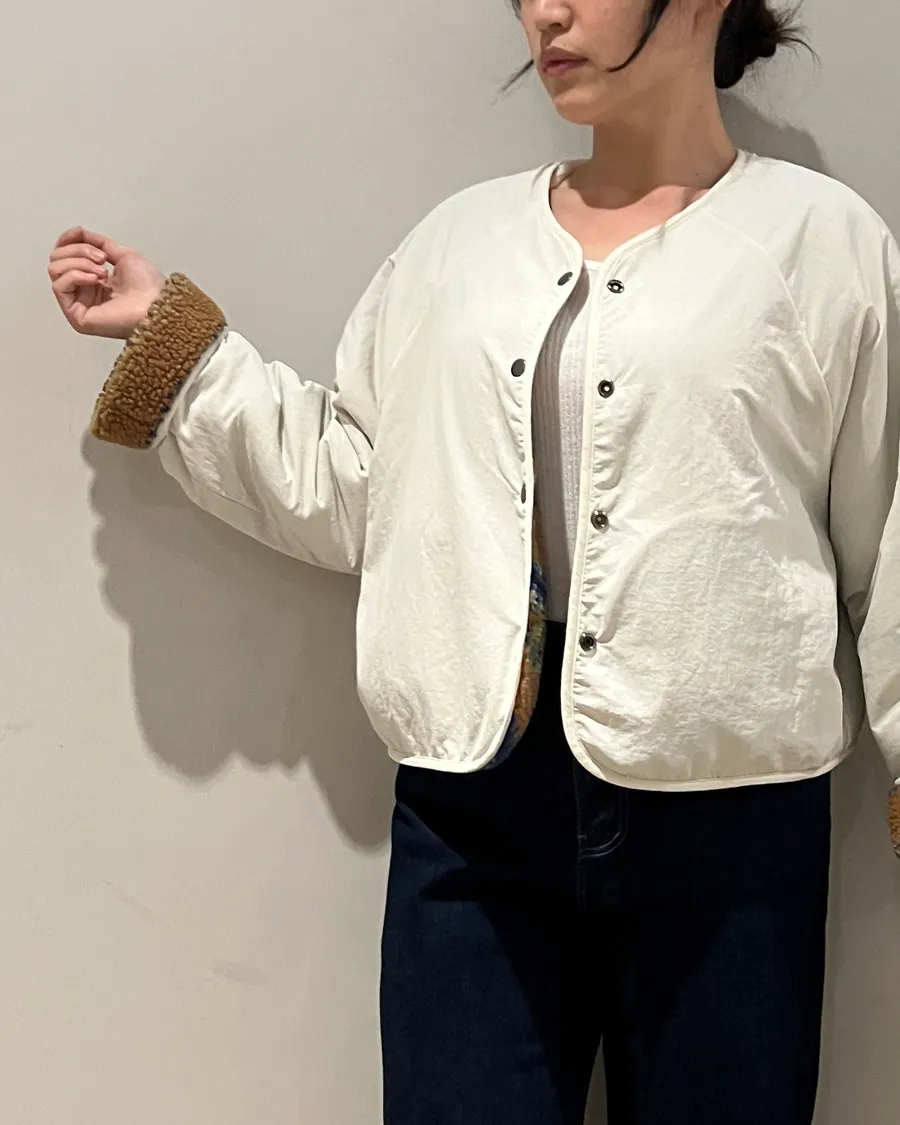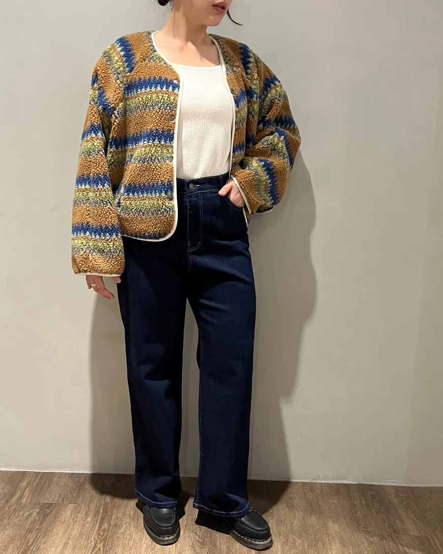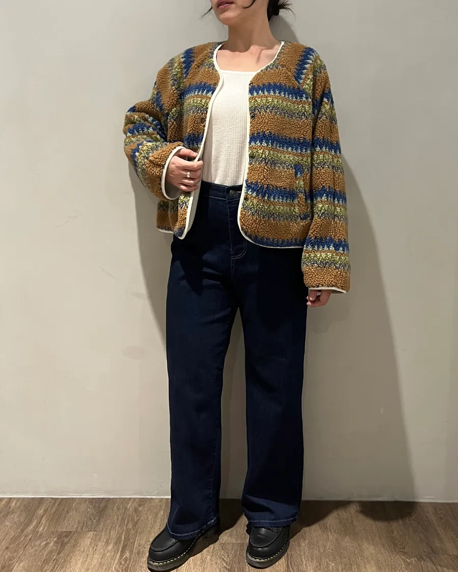 短版設計更顯修長,不過吸引我的還有特殊花樣搭配搖粒絨獨特顆粒感,說是印象派點描畫也不為過,而且隨你心情雙面皆可穿。