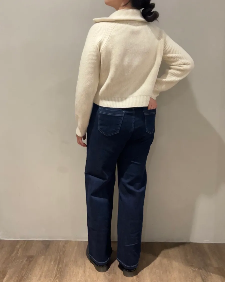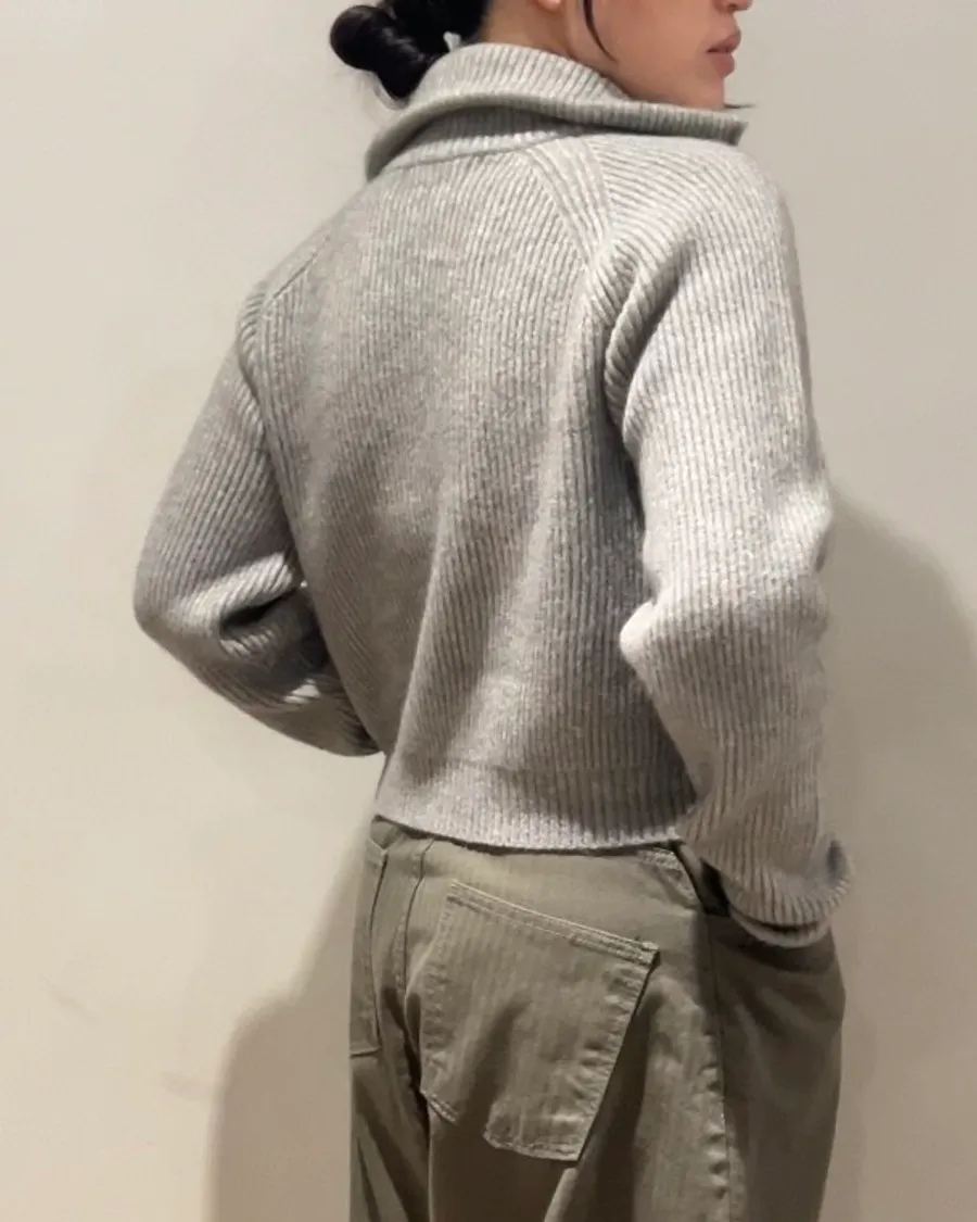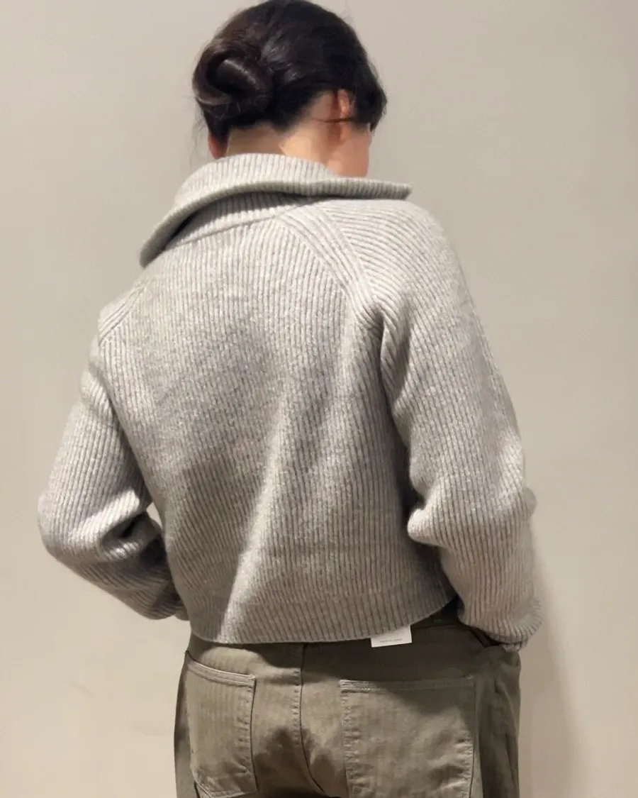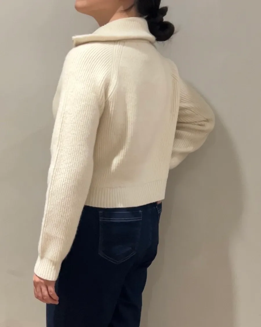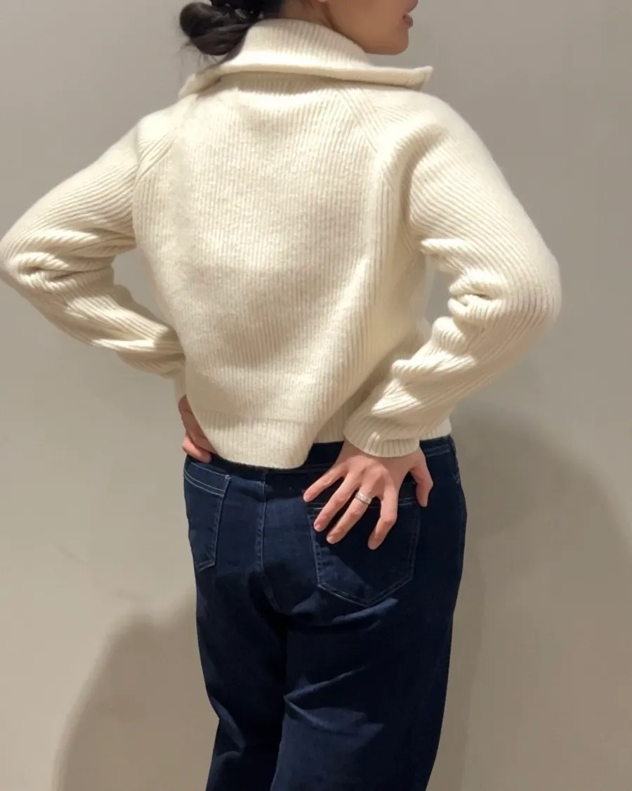 適當展現肌膚其實可以製造視覺修飾感,上下拉鍊開襟設計,搭配高腰褲,這個冬天除了麻辣鍋會辣,你也可以辣一下。