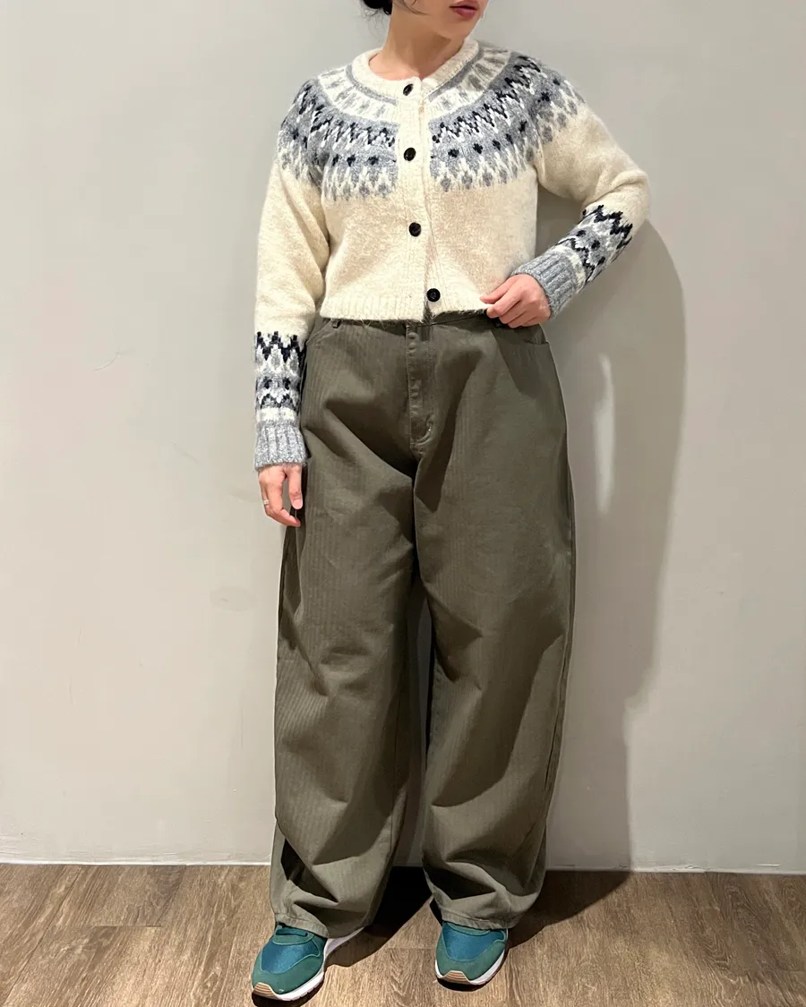 彎刀褲百百款,為什麼這件厲害,1.有別於市面上大多從髖部設計,而是從大腿1/3處開始,不顯臀寬。2.高腰設計,褲長垂地,身形比例拉長。3.斜紋卡其布料,版型穩定不易皺。
