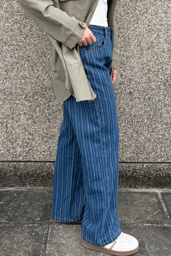 直條紋直筒牛仔褲
