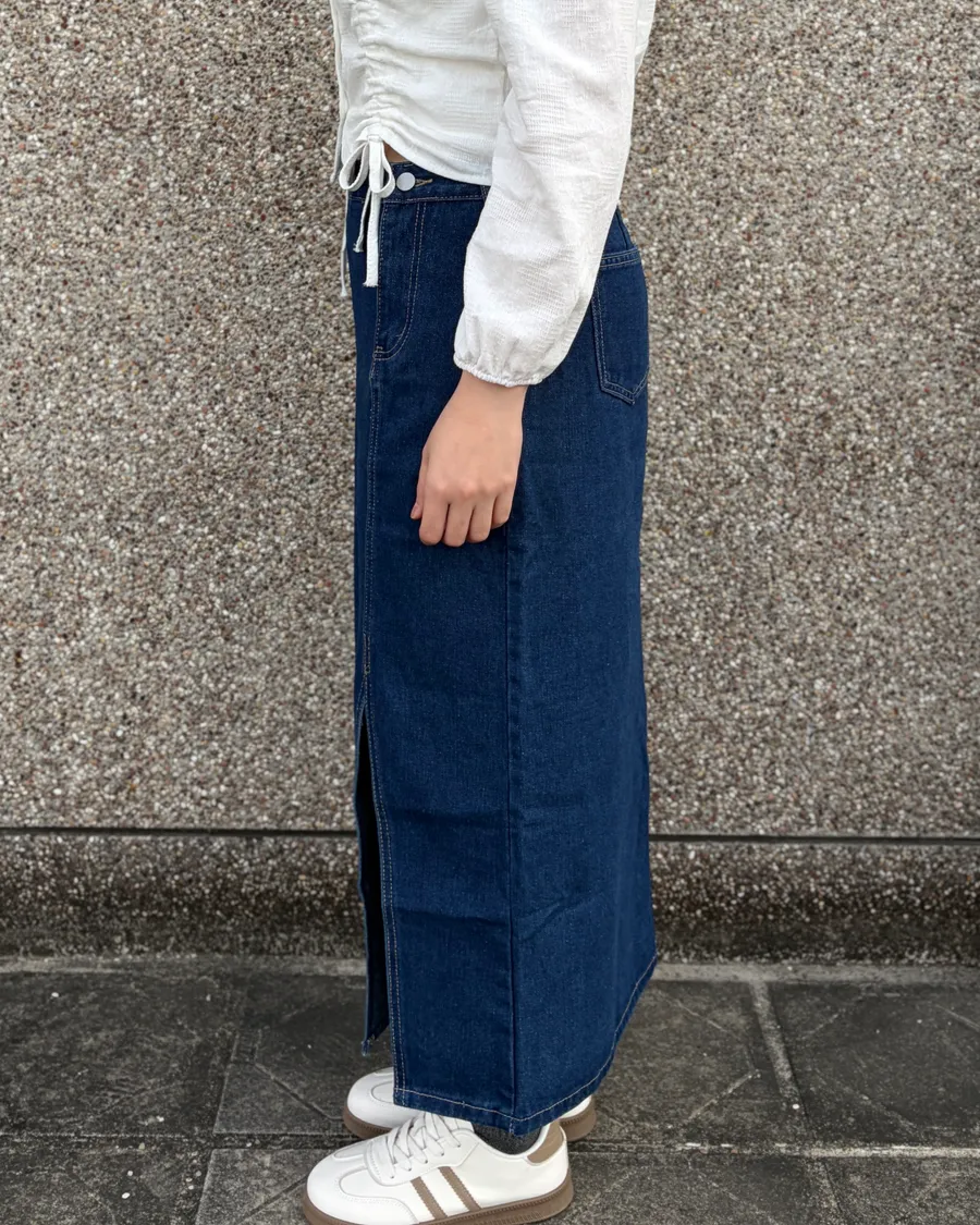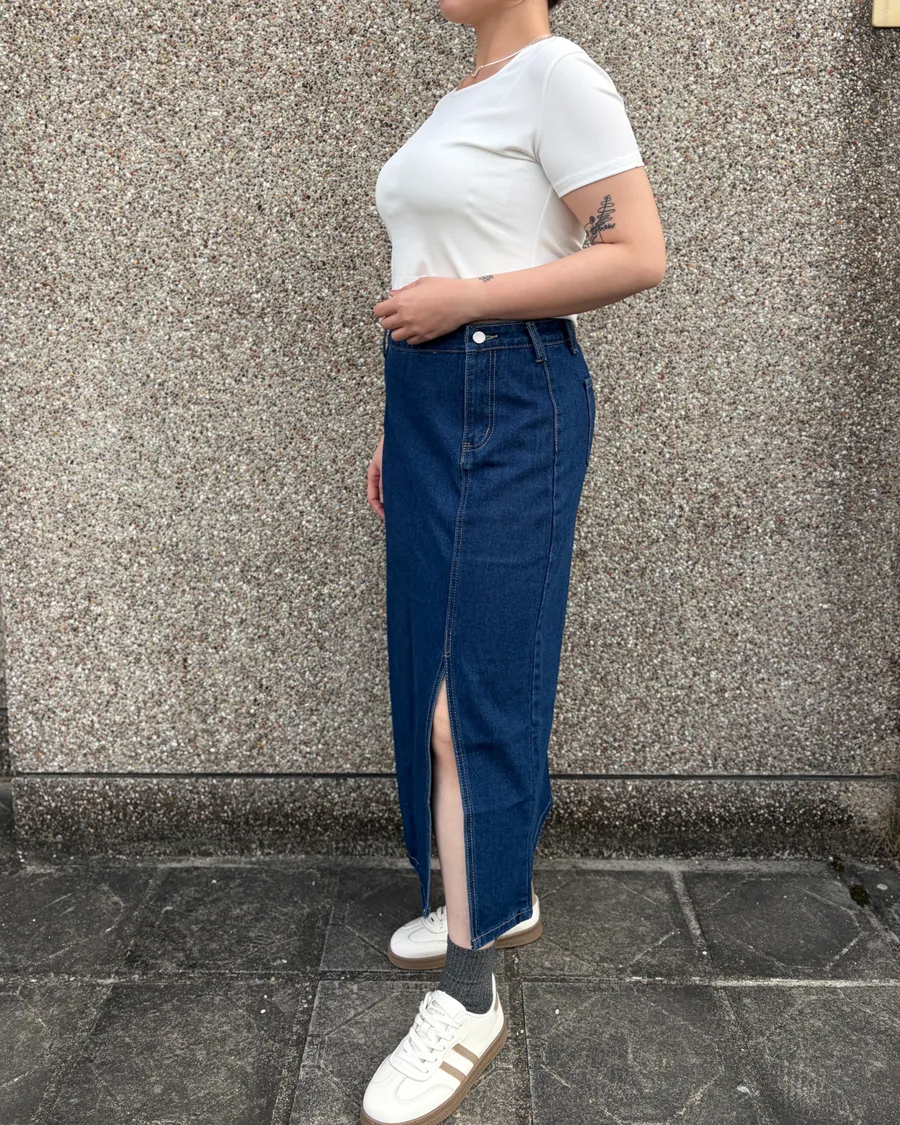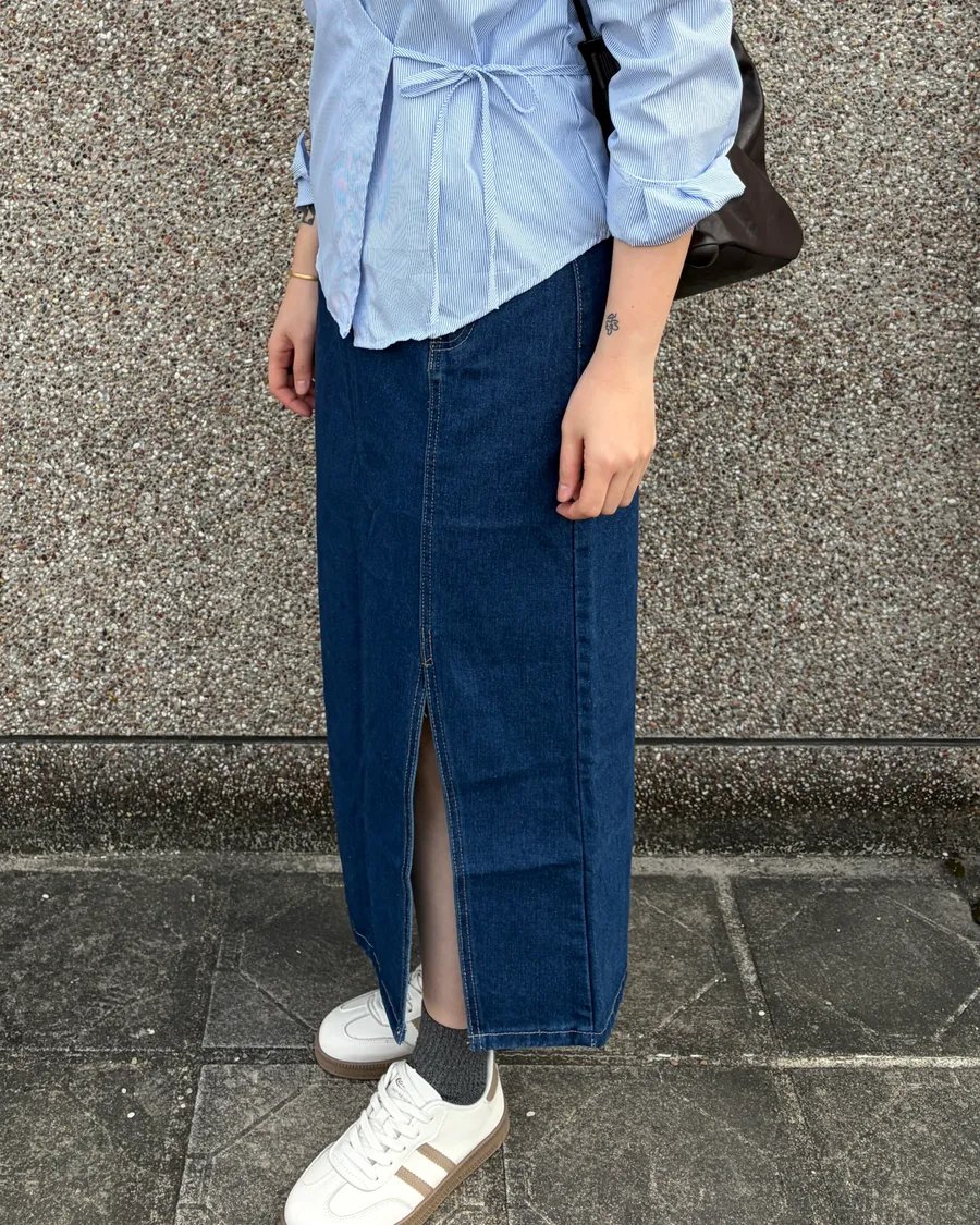 小眾設計側釦開衩牛仔裙