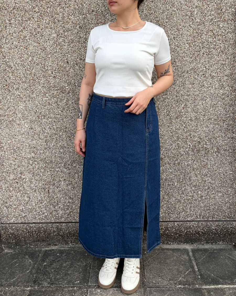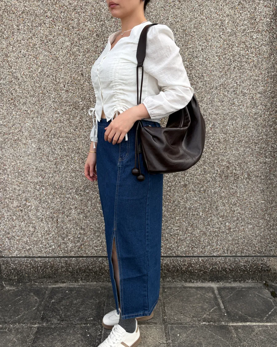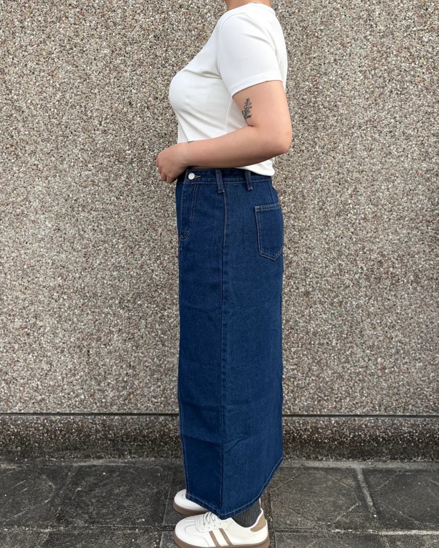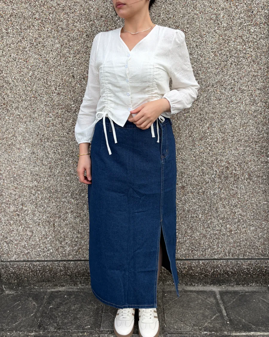 小眾設計側釦開衩牛仔裙